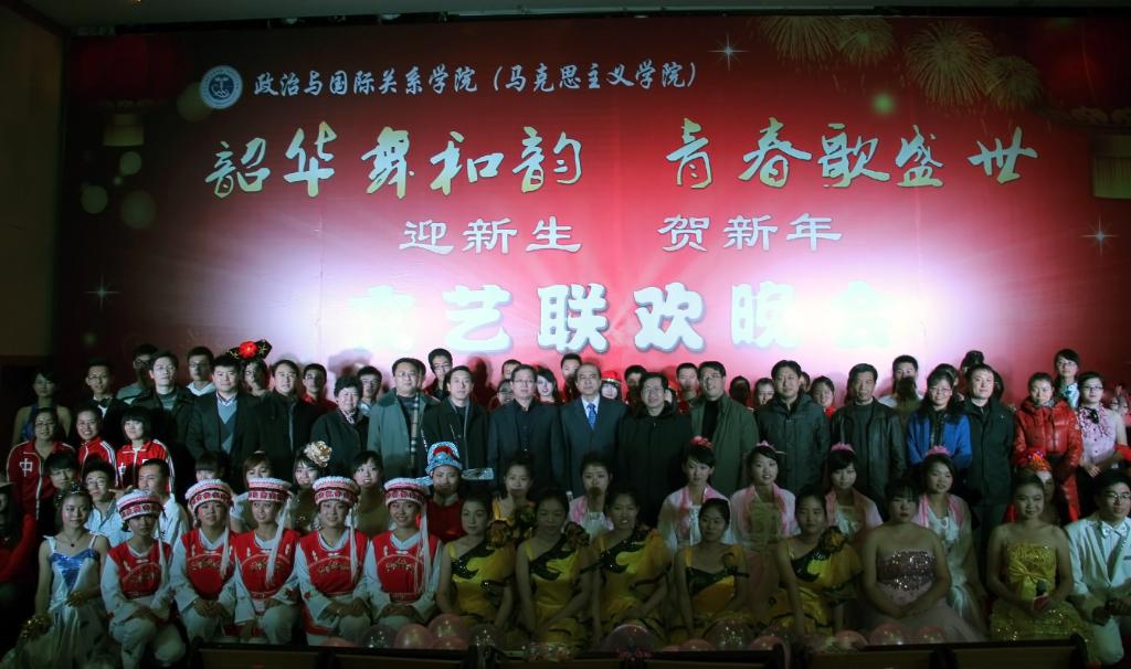 12月25日晚,山东师范大学长清校区综合教学楼C区101报告厅流光溢彩、笑语欢歌。政治与国际关系学院(马克思主义学院)在此隆重举办“韶华舞和韵 青春歌盛世”——迎新生贺新年文艺联欢晚会。学校人才交流中心主任、人事处副处长岳希亮,学生处副处长于铁、发展规划处副处长张茂聪、长清校区办公室副主任杨连友、学院党政领导班子、系部主任、全体辅导员以及400余名学生一起观看了晚会。