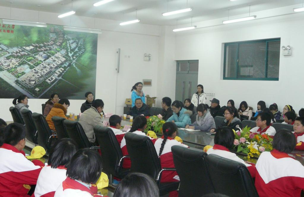 为深入学习贯彻党的十八大精神,进一步增强大学生的团员意识,培养团员青年的爱心和社会责任感,12月13日,由政治与国际关系学院团总支主办、2012级政治类一班团支部承办的政治与国际关系学院与长清崮云湖小学“与祖国共奋进·与学校同发展”主题团日活动在长清校区综合教学楼C148会议室隆重举行。长清崮云湖小学校长赵静、大队辅导员李汉芳等40名师生,政治与国际关系学院团总支副书记孙茂泉、2012级辅导员魏强和2012级政治类一班团支部成员共同参加了活动。活动由2012级政治一班团支部书记孙瑞瑶主持。