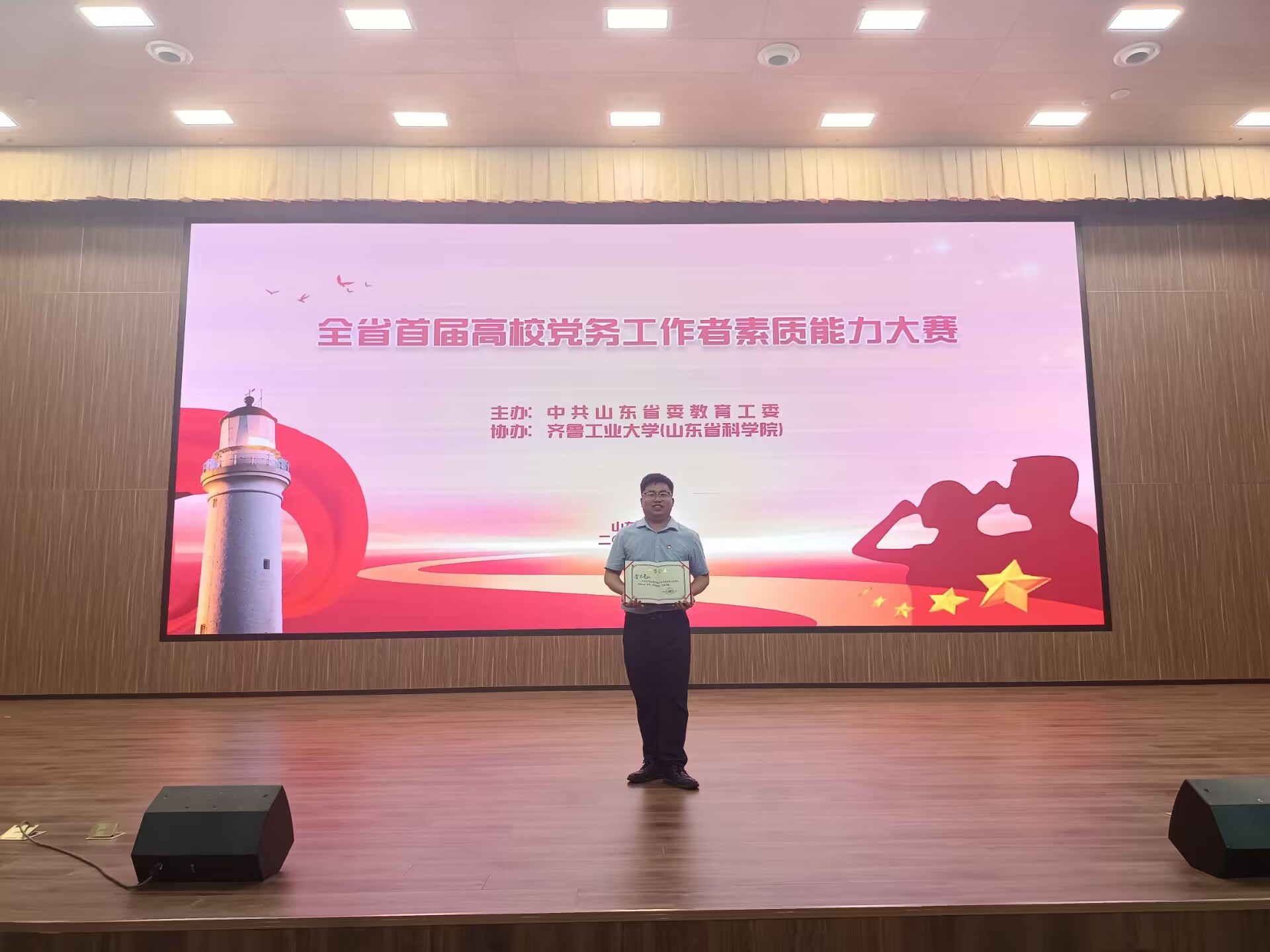 6月20日,由山东省委教育工委举办的全省首届高校党务工作者素质能力大赛落下帷幕。经过6天的激烈角逐,学院学工办主任、团委书记李志亮凭借扎实的理论功底、过硬的素质能力和出色的赛场表现,在全省142所高校的273位参赛选手中脱颖而出,荣获一等奖。