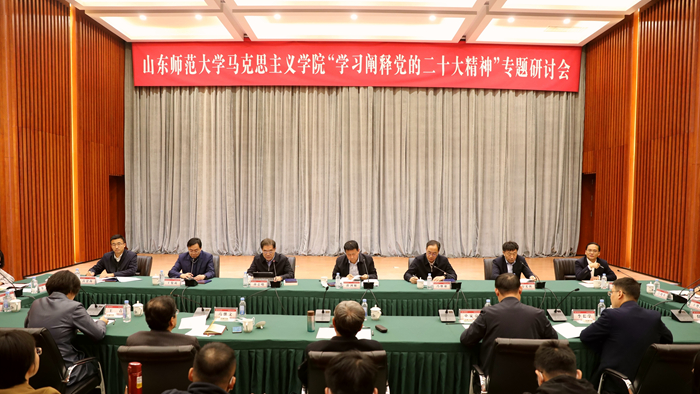 10月27日上午,由山东师范大学马克思主义学院、党委宣传部、社会科学处主办,以“学习阐释党的二十大精神”为主题的专题研讨会于长清湖校区文昌楼举行。山东省政协副主席唐洲雁,山东师范大学党委书记冯继康,山东师范大学原党委书记、山东省高校当代中国马克思主义研究院院长商志晓出席研讨会。山东师范大学副校长万光侠主持开幕式。