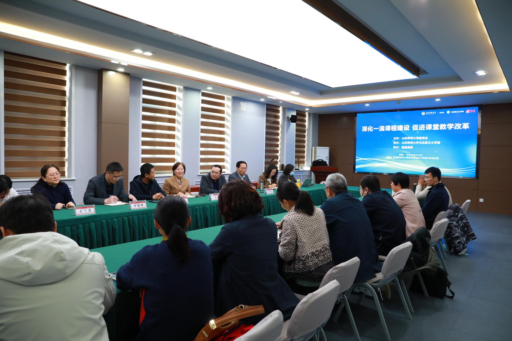 为进一步深化课堂教学改革、推动教学方法的适应性创新,提高一流课程申报与建设质量,10月20日下午,学校教务处、马克思主义学院、超星集团于正德楼430会议室联合举办“深化一流课程建设 促进课堂教学改革”研讨会。教务处副处长马英红、教学资源科科长李晓峰、马克思主义学院院长王增福、院长助理孙余余出席会议,学院王兰芳教授、任者春教授、超星集团赵玉霞三位专家作经验分享交流。第一批课堂教学改革课程负责人、各专业负责人、一流课程负责人及团队骨干教师、各系部主任等教师参会,会议由吴春雷副院长主持。