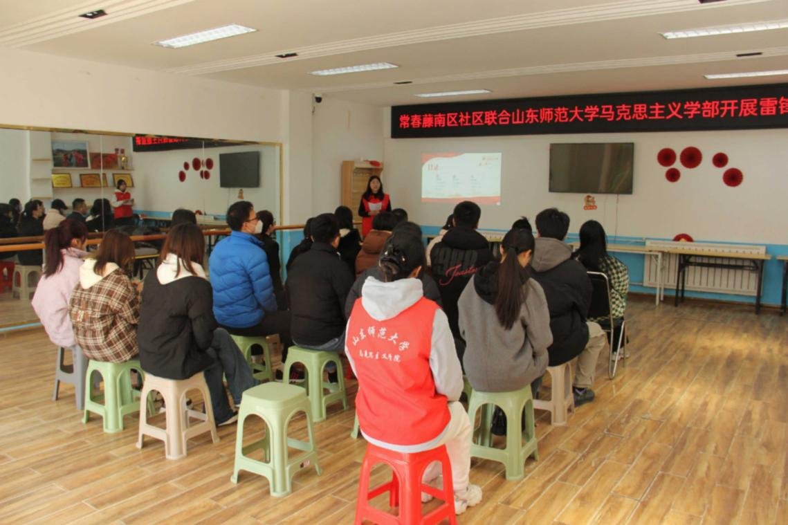 3月8日下午,马克思主义学部学生会、青年志愿者协会、“青马先锋”团校共同组建宣讲队于长清区崮云湖街道常春藤南区社区开展雷锋月宣讲活动。社区多位党员参与此次活动。