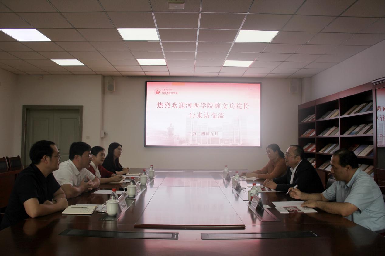 9月24日,河西学院马院顾文兵院长一行3人来访学部调研交流。学部党委书记顾大伟,党委副书记、纪委书记潘磊,副部长吴春雷,2023级辅导员张玲玉参加交流会。