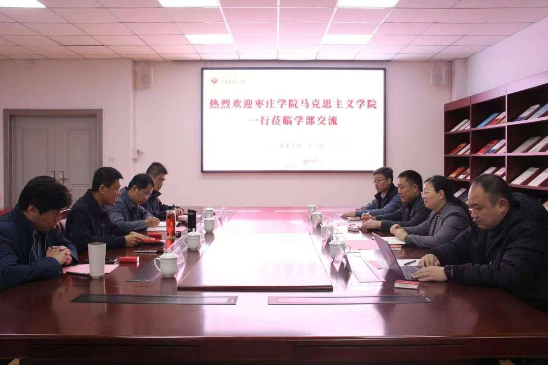 10月31日上午,枣庄学院马克思主义学院党委书记仝锡文,党委副书记、院长董嫱嫱等一行4人来学部考察交流。马克思主义学部部长王增福、学术副部长刘斌、学部工会主席刘现华、副教授朱文琦会见仝锡文一行。双方在正德楼312会议室举行交流座谈会。