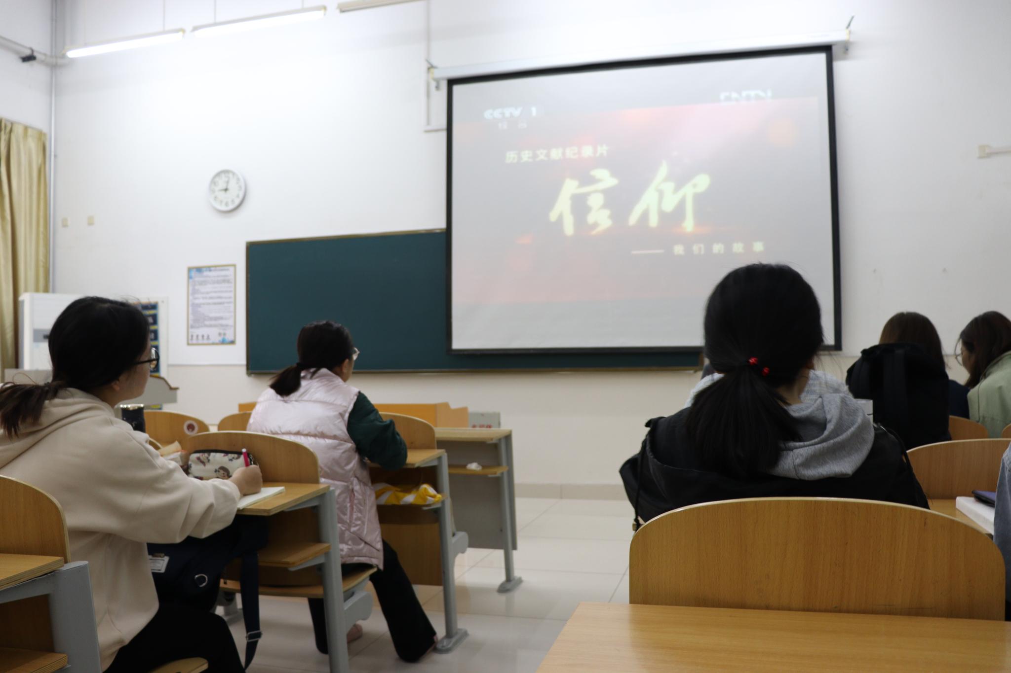 《信仰》纪录片全片分为“只要主义真”、“壮志换新天”和“时代先锋行”3集,纪录片以中国共产党百年历史为背景,讲述新民主主义革命、社会主义建设、改革开放各个历史时期优秀共产党员的动人事迹。其中,安徽省凤阳小岗村党委第一书记沈浩扎根农村、一心为民的事迹令同学们为之动容。