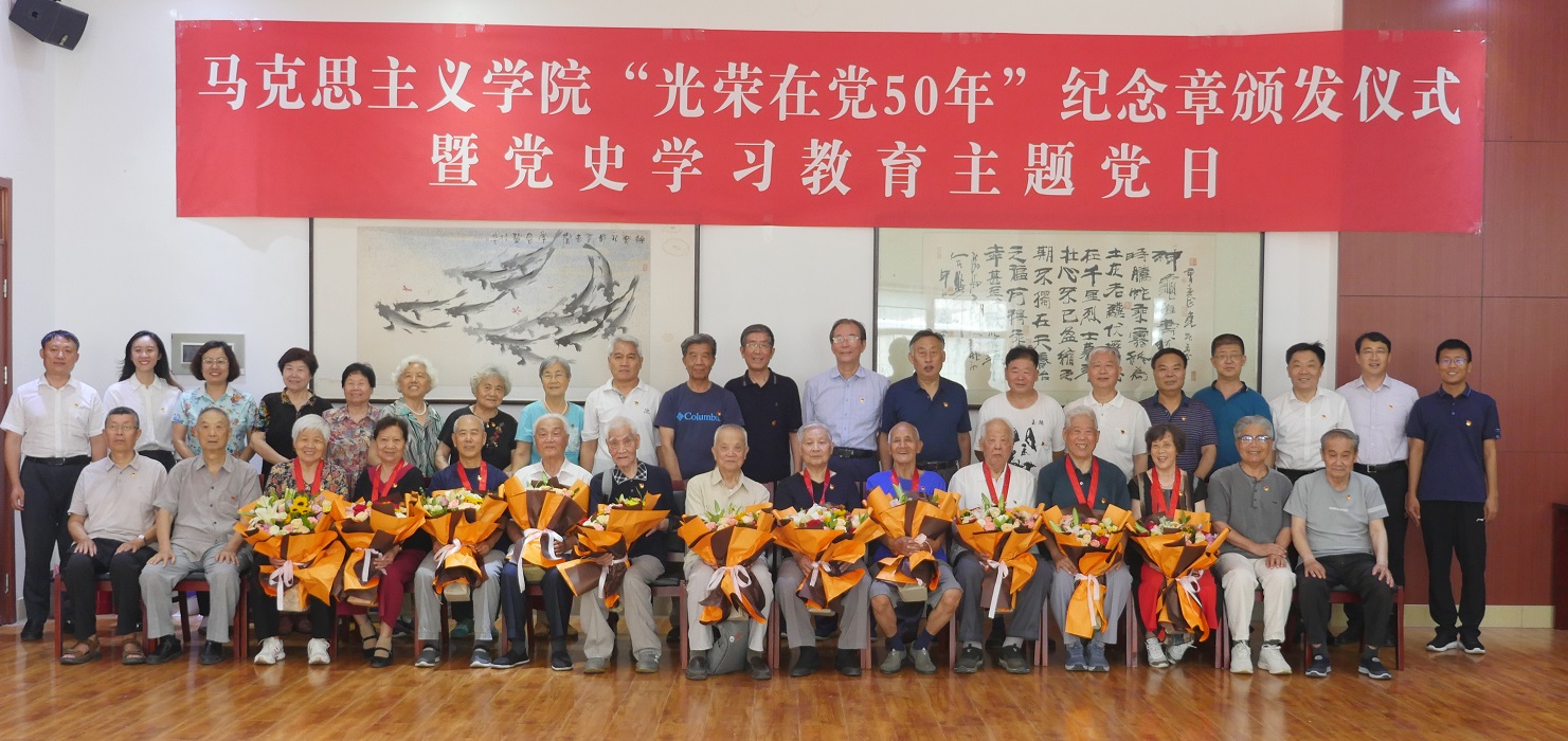 6月28日上午,马克思主义学院于千佛山校区老干部活动中心会议室举行“光荣在党50年”纪念章颁发仪式暨党史学习教育主题党日活动。副校长万光侠,学院班子成员,学院“光荣在党50年”老党员及部分离退休老同志共30余人参加仪式。仪式由学院党委书记吕晓勇主持。