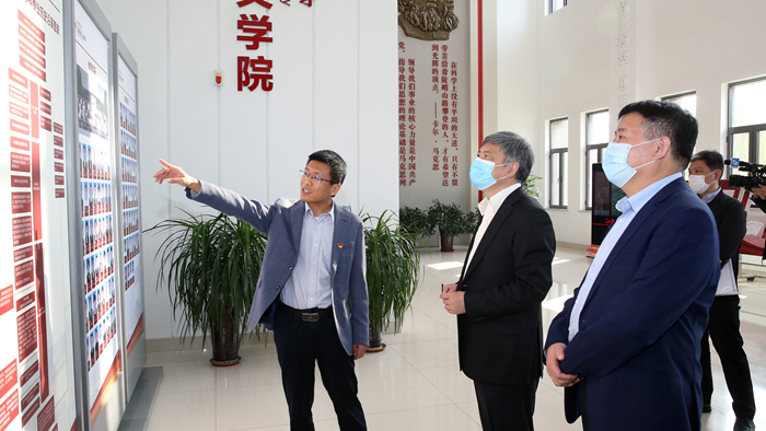 调研交流期间,中央宣讲团成员参观了建校70周年成就展,参观了马克思主义学院党史学习教育展板和党建文化展室,听取了院长王增福关于全国重点马院建设情况的介绍。谢春涛对学校建校以来,尤其是近年来,围绕立德树人根本任务,聚焦学校核心竞争力提升,在山东“双高”建设和冲击国家“双一流”学科建设高校等方面取得的成绩表示赞赏,给予高度评价。