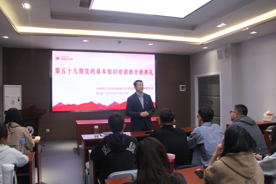 10月11日,马克思主义学院第五十九期党的基本知识培训班开班典礼于长清湖校区正德楼430会议室举行。学院党委书记吕晓勇,党基班班主任、2018级本科生辅导员刘霄,组织员孙蕾以及第五十九期培训班全体成员参加开班典礼。开班仪式由刘霄主持。