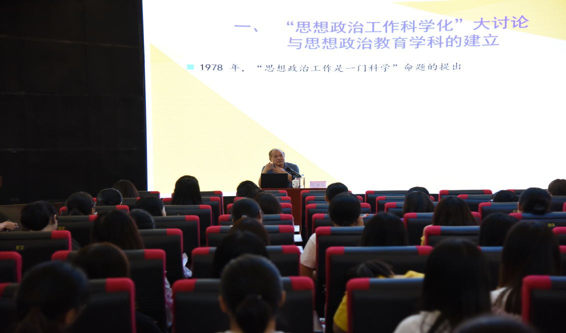 会议伊始,万教授指出有许多“重要他人”和“重要事件”在人的发展过程中起重要作用,学科的成长与人的成长一样,继而引出报告会的内容,从“讲述学科故事,坚定专业自信”的角度来阐述会议主题。他以时间顺序为主线,以“重要他人”和“重要事件”为节点,把思想政治教育学科发展中的几个重要事件划分为五个重要阶段一一讲述。一是“思想政治工作科学化”大讨论与思想政治教育学科的建立;二是加强高校思想政治工作与思想政治教育学科的发展;三是建立社会主义市场经济体制与思想政治教育学科的新变化;四是加强和改进青少年思想政治教育与马克思主义理论一级学科的设立;五是纪念思想政治教育学科创立30年与思想政治教育学科创新发展。万教授以讲故事的方式深入浅出地讲明了思想政治教育学科发展中的几个重要事件。此外,万教授对思想政治教育专业的同学们提出要求,要打牢理论功底和学科专业基础,造就思想政治教育专业学生的核心竞争力,建立学科自信和专业自信,并对同学们提出美好希冀,希望同学们心中有梦,不断向前!