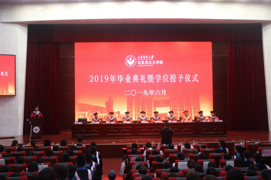 6月21日,马克思主义学院2019年毕业典礼暨学位授予仪式在长清湖校区第一报告厅举行。教务处、研究生院、研究生工作部、学生工作处等单位有关人员,学院部分领导老师在主席台就坐。学院各学位点负责人、学生导师、全体辅导员、2019届全体毕业生以及部分毕业生家长参加典礼。典礼由院党委副书记孙建青主持。