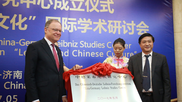 5月24日,中德莱布尼茨研究中心成立仪式暨莱布尼茨与中国文化国际学术研讨会在山东师范大学千佛山校区举行。德国下萨克森州州长斯特凡·威尔率领代表团一行访问我校。国际莱布尼茨学会秘书长、德国柏林-勃兰登堡科学院《莱布尼茨全集》编辑部主任李文潮教授和来自西班牙、美国、意大利、爱沙尼亚、日本等50余名中外知名学者参加了研讨会。