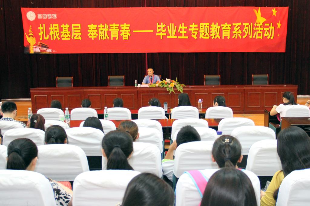 报告会上,念以新以“扎根基层奉献青春”为主线,将自己从事工作26年来一步步成长为“全国先进工作者”、“全国模范检察官”的心路历程娓娓道来,与同学们一起谈理想、讲法律、说热线、提建议,用真挚的感情、朴实的语言、生动的事例和青年学子进行心与心的交流,给同学们上了一堂生动的廉洁教育课、一堂法制教育课、一堂道德修养课,为同学们树立了一个可亲、可信、即视、真实的学习榜样。在报告会上,念以新结合自己多年的工作经历,向同学们详细分析了当前大学生群体中常见的三类犯罪行为和六种犯罪心理,并结合发人警醒的现实案例告诫同学们要自觉遵守法律,保持健康心灵,远离违法犯罪。他还特别讲到,作为新时代的青年大学生,特别是作为一名党员,我们要积极响应习近平总书记的号召,敢于有梦,勇于追梦,自觉圆梦,始终把党和人民的利益放在首位、放在心上,扎根基层,奉献青春。同时,他还与同学们分享了自己总结的“心要热,脑要灵,脸要笑,耳要听,手要握,身要平,腿要勤”的工作经验,并借此勉励广大毕业生同学,希望同学们在未来学习、工作和生活中要自觉遵纪守法,发扬中华民族传统美德,弘扬社会主义核心价值观,做一个有爱心,有担当,有作为,有正气的好青年。同学们被念以新的精彩报告和崇高品格深深吸引,产生强烈共鸣,现场不时爆发出阵阵热烈的掌声。