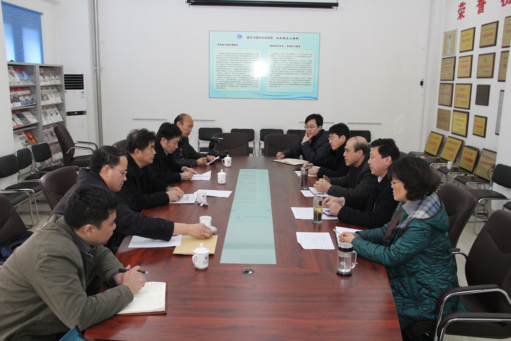 学院汇报了新学期开学准备工作和传达学校干部大会精神的情况,并围绕马克思主义学院建设,调动广大教师积极性、加快学院发展等工作进行了座谈。商志晓书记指出,政治与国际关系学院(马克思主义学院)作为第一批整建制搬往长清湖校区办学的学院,克服了诸多困难,保证了教学科研和行政管理工作顺利运行,为学校办学重心的转移和更多学院整建制搬往长清湖校区办学探索了管理模式、积累了工作经验。学校将结合奖励性绩效工资分配方案的实施,制订较宏观的绩效考核办法,各学院再结合本学院具体情况,制订细致具体、高效可行的绩效考核办法,调动全体教师的教学科研积极性,推动学院、学校的发展。同时,围绕马克思主义学院建设工作,与学院在学科专业调整、研究机构设立以及与省内科研单位开展互助共建等方面进行了探讨。