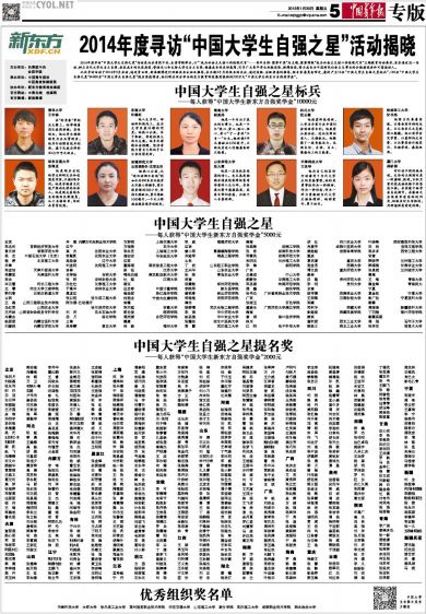 1月30日,《中国青年报》揭晓了2014年度“中国大学生自强之星”评选结果,我院2013级博士研究生张九童从全国一千余所高校推荐的10746名学生候选人中脱颖而出,荣获“中国大学生自强之星标兵”称号,这是我校学生首次荣获此项称号,也是2014年度评选中我省高校荣获该荣誉称号的唯一学子。