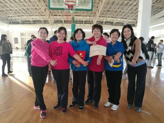 为活跃教职工业余生活,学校工会组织本次气排球比赛。学院工会广泛发动、认真组织,十二名教师组成了男女球队。由于第一场比赛安排在下午两点半,有的老师上午上了四节课,中午稍事休息,就整装上场;有的老师要中午在班车上颠簸一个小时才赶到球场,来不及休息,就投入比赛。大家在比赛中既放松心态,沉着应战,又每球必争,展示出强烈的求胜欲望。特别是女子排球队,主力队员平均年龄53岁多,被戏称为“奶奶队”。王慧媞、宋惠芳、宫菊花、杨素群、邱晓煜、李桂艳六位老师,有的在比赛中拉伤了肌肉,有的中午从四百公里以外赶来,有的在场边处理完工作接着上场-------大家同心协力,一路过关斩将,杀进淘汰赛。在半决赛和决赛中,都是在先失一局、决胜局大比分落后的不利局面下,力挽狂澜、扭转乾坤,最后登上了最高领奖台。