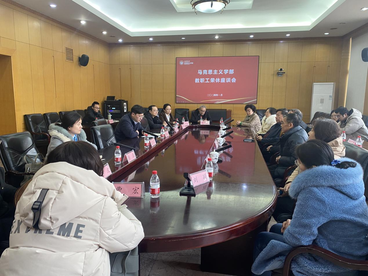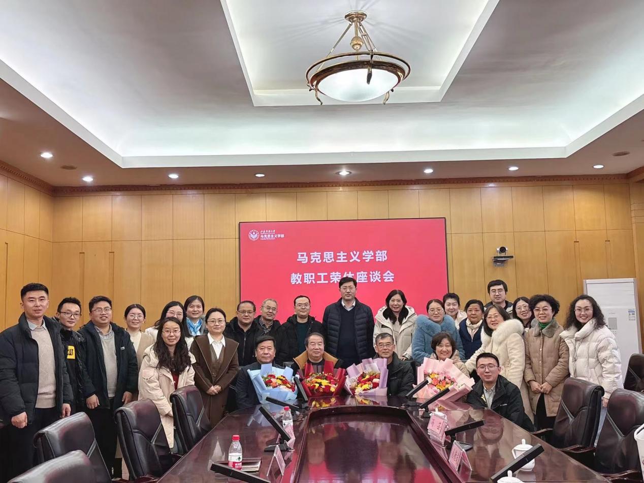 1月12日下午,马克思主义学部在千佛山校区文化楼三楼会议室举行教职工荣休座谈会。学部退休教师肖德武、杨增昌、胡保华、王慧媞出席本次座谈会,学部领导班子成员和教师代表三十余人参加会议。座谈会由学部党委书记顾大伟主持。