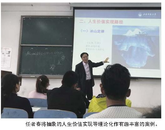 任者春的授课,遵循一种“大教学论”,他觉得思政课就是专门来体现这个“大”字的,直接塑造学生、提升学生的大境界。“这种课程,就是要让学生把各门课程的学习向着一个整体去整合,把各门课程学习的知识跟生命境界的提升深度融合起来。”任者春认真地说。