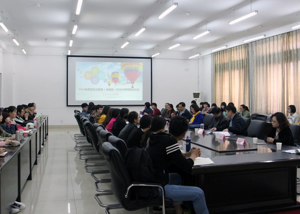 3月31日,学院于长清湖校区C区148会议室隆重举行2014级思想政治教育卓越班校内外导师聘任仪式。学院副院长徐稳、院长助理史家亮、团总支负责老师、新聘任的16名校内外本科生导师以及2014级思想政治教育卓越班全体同学出席仪式。活动由史家亮主持。