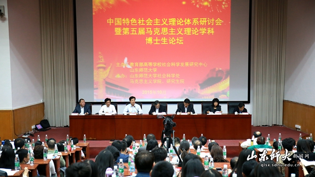 10月16-17日,由教育部高等学校社会科学发展研究中心、山东师范大学主办,山东师范大学社科处、马克思主义学院承办的“中国特色社会主义理论体系研讨会暨第五届马克思主义理论学科博士生论坛”在我校召开。教育部社会科学委员会副主任顾海良、教育部高等学校社会科学发展研究中心主任王炳林、山东师范大学党委书记商志晓、高等学校社会科学发展研究中心副主任杨海英、首都师范大学党委副书记徐志宏、我校副校长张文新出席大会开幕式。来自全国70余所高校的80余名专家学者以及40多名博士生参加了研讨会。会议开幕式由张文新主持。