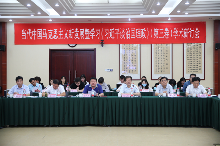 9月12日,由山东省马克思主义研究会、山东省高校当代中国马克思主义研究院、山东师范大学马克思主义学院和山东省委党校(山东行政学院)校刊部联合主办的当代中国马克思主义新发展暨学习《习近平谈治国理政》第三卷学术研讨会在山东师范大学举行。来自教育部高等学校社会科学发展研究中心、中国社会科学院、中共中央党校(国家行政学院)、山东大学、陕西师范大学、南京师范大学、山东省委党校(山东行政学院)、山东师范大学、曲阜师范大学等全国高校、党校和科研机构的100余位专家学者通过线上线下相结合的方式参加了本次论坛。