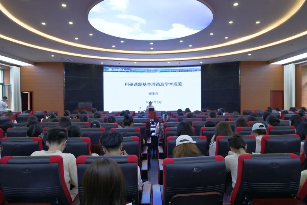 9月11日下午,马克思主义学部于长清湖校区树蕙堂二楼虚拟仿真中心举办“科研选题基本遵循及学术规范”专题讲座。讲座由学部副部长、博士生导师史家亮教授主讲。学部2025级研究生共130余人参加了此次报告会。