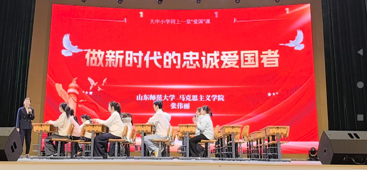 下午,主要围绕“爱国”主题进行大中小学思政课一体化教学展示活动。来自小学、初中、高中及大学各学段的教师,带领学生们呈现了四节富有层次、各具特色的爱国主义教育公开课。小学孟祥新老师以《数不清的伟大成就》为题,通过情境式教学,让爱国情感与报国志向深入心灵;初中武玉华老师以《“爱国三问”的时代回应》为题,注重体验式教学,引导学生在亲身体验中深化对爱国情怀的理解;高中唐晓霞老师以《厚植家国情怀 弘扬爱国主义》为题,利用“辛锐的无悔抉择”这一故事,以小见大,将价值判断与价值选择融入核心议题;大学学段,我院张伟丽老师以《做新时代的忠诚爱国者》为题,带领研究生同学们开展思辨式教学,遵循“是什么—为什么—怎样做”的逻辑脉络呈现了一堂既有深度又有启发的爱国主义教育课。