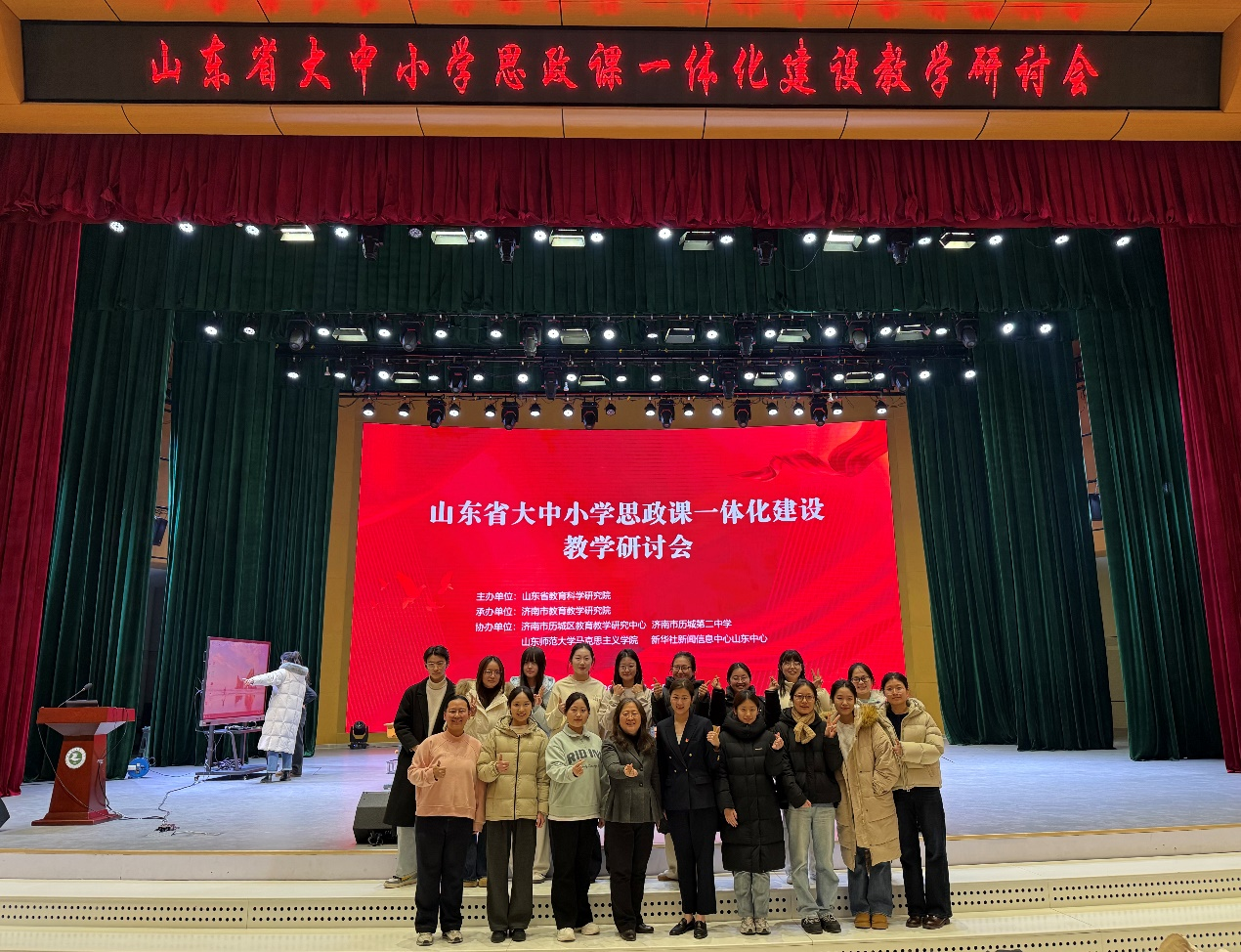 1月27日,在教育硕士学位点负责人王兰芳教授的带领下,马克思主义学院2025级学科教学(思政)专业研究生赴济南稼轩学校参加了山东省大中小学思政课一体化建设教学研讨会。参加此次会议的有全省小学、初中、高中思政课教研员,大中小学思政课一体化建设教研员,大中小学思政课骨干教师,中小学思政课特级教师工作坊成员等。