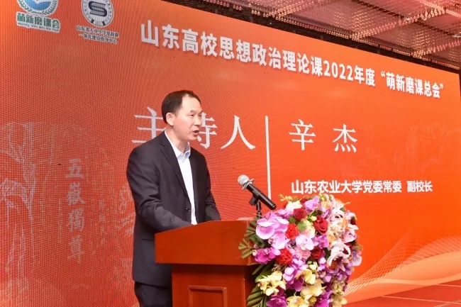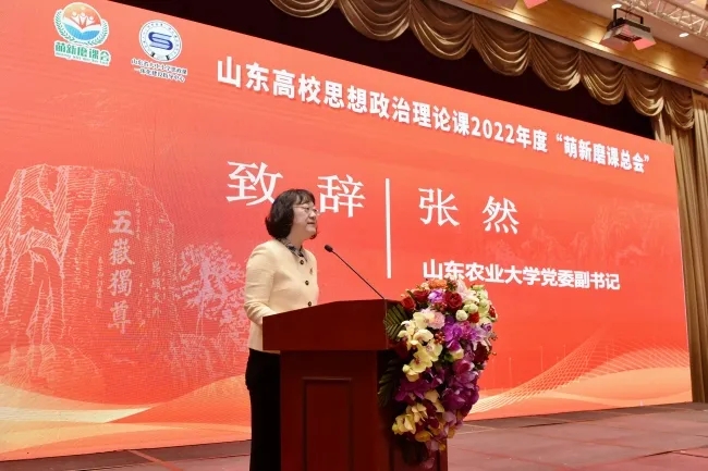 张然在致辞时对与会专家学者表示热烈欢迎,并介绍了学校办学情况、取得的成绩等。她说,近年来,山东农业大学认真贯穿落实习近平总书记在学校思政课教师座谈会上的重要讲话精神,把马克思主义学院作为重点学院、思政课作为重点课程加强建设,“大思政课”建设格局持续拓展。这次磨课总会的召开,必将为推动我校思政课教学改革创新注入新动力。学校将通过这一平台,更好地吸收借鉴和有效利用省内外马克思主义理论研究与思政课教育教学相关资源,培育一批有“生命力”“创造力”的思政课“萌新”示范课堂,锻造一批个体与团队同向同行的思政课教学示范团队,打造立足山东、面向全国的高校思政课创新品牌,助力全省思政课建设提质培优、增值赋能。