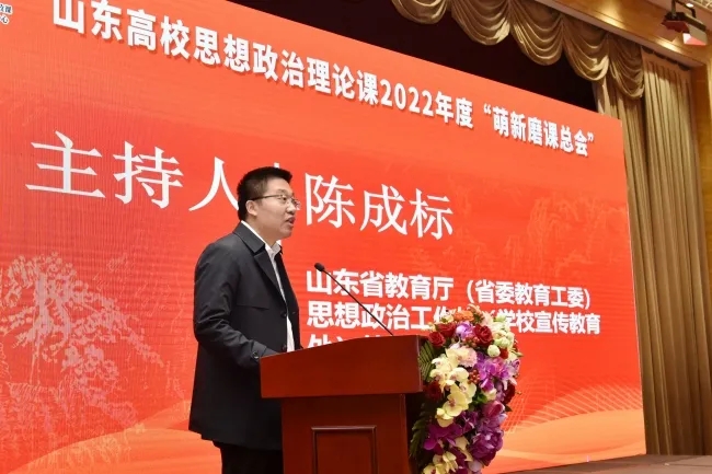 2月25日至26日,山东高校思想政治理论课2022年度“萌新磨课总会”在泰安举办,省内18所学校的19位入围决赛的思政课青年教师分别在本科高校和高职高专两个组现场展示。山东省教育厅总督学仲红波,山东农业大学党委副书记张然、副校长辛杰,山东商业职业技术学院党委书记张志东,山东省教育厅思政处处长陈成标、副处长仇宝艳等领导出席会议。开幕式由陈成标主持。