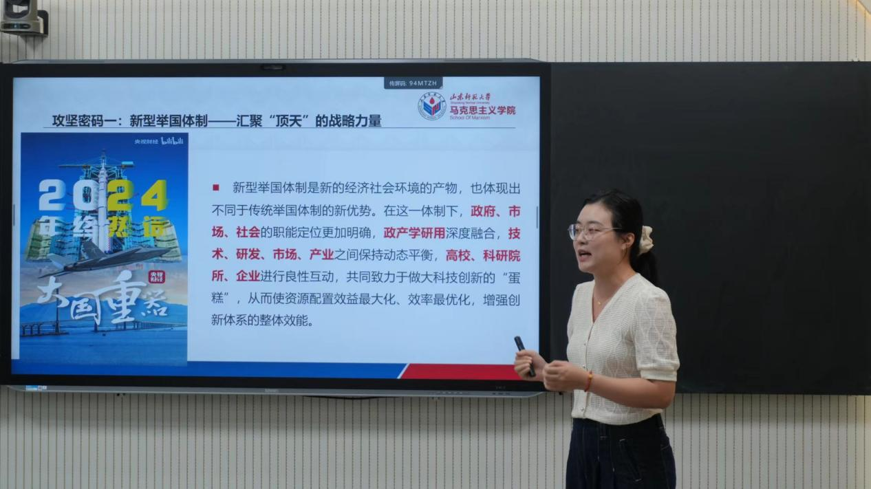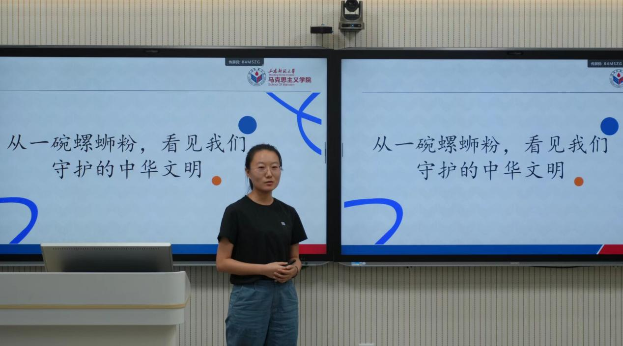 赛后,尹诵围绕课程设计与逻辑构建提出系统性建议,强调需以三层递进框架替代平铺直叙,通过最新热门案例、数字化媒介的合理配置突出学生主体属性,同时把控教学节奏与时间分配。张伟丽指出选题需锚定现实高度,以逻辑闭环确保内容衔接,并要求语言过渡自然、PPT与板书协同优化,对课程内容打磨的精准性与层次感给出针对性建议。李冰冰与刘园园指出课堂设计需紧扣国家热点,以小切口选题切入,通过层次清晰化、文字精炼化及导入简明化实现深度提升,并强调现场表现力与实时互动的重要性。史倩在总结中进一步凝练核心原则,强调教学须以学生为中心,兼顾情感温度与理论深度,并鼓励教师探索与个人风格适配的教学方式,实现教育目标与个性化表达的有机统一。