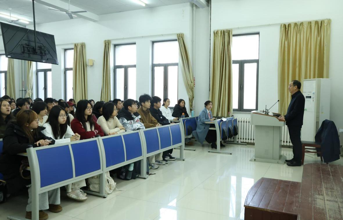 冯继康围绕党的二十届四中全会召开的重大意义、“十五五”时期发展方位与目标任务、当前国内外形势与战略机遇、新时代青年使命担当等方面展开深入讲解。他立足党的二十届四中全会审议通过的《中共中央关于制定国民经济和社会发展第十五个五年规划的建议》核心要义,系统解读了未来五年国家发展的指导思想、重大原则与战略部署,紧密衔接学校“十四五”时期发展成效与“十五五”规划远景目标,深刻剖析了新征程上高校在服务国家战略、培育时代新人等方面面临的历史机遇与使命担当。在阐述“十五五”时期经济社会发展主要目标与战略任务时,冯继康围绕繁荣发展社会主义文化、加快建设教育强国等核心部署,与在场学生交流互动,引导学生深刻体悟自身专业学习的时代价值。他强调,要将学习贯彻全会精神与夯实专业基础、投身实践创新相结合,自觉将个人成长融入国家发展和民族复兴的伟大进程。