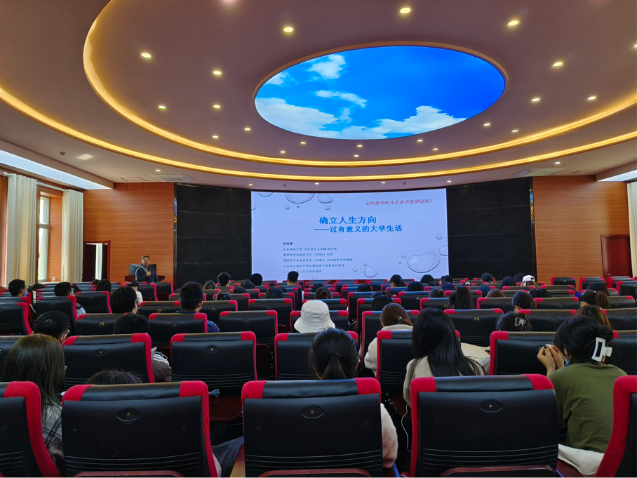 3月30日下午,马克思主义学部于树蕙堂虚拟仿真思政课体验教学中心开展团体心理辅导活动。学部教师张利增进行了以“确立人生方向—过有意义的大学生活”为主题的经验分享,2022级全体学生参加,活动由2022级辅导员刘霄主持。