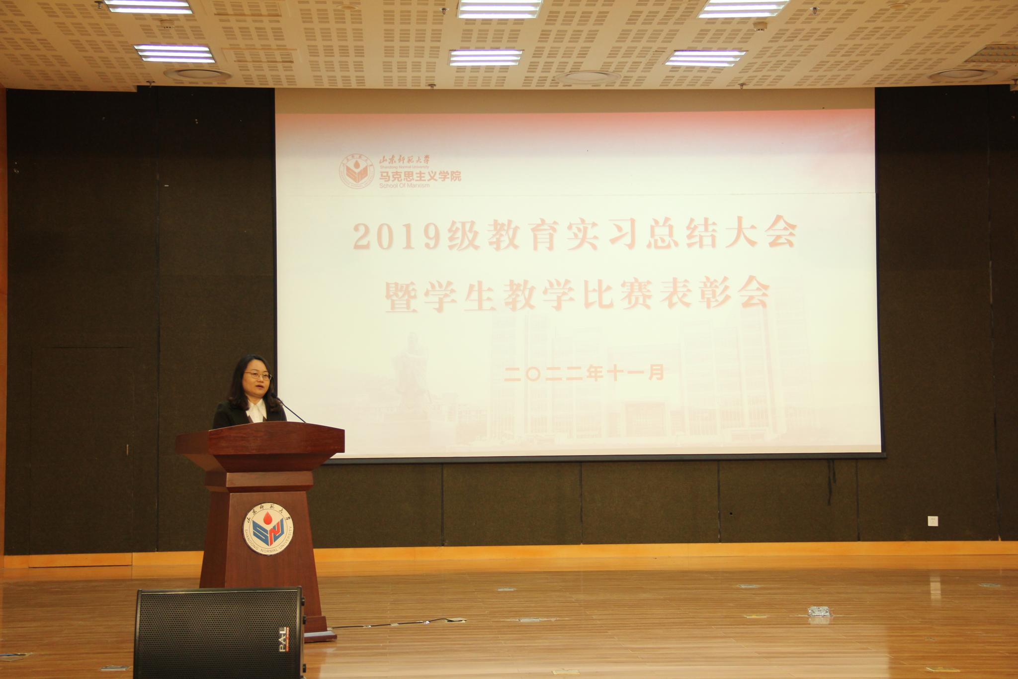 11月3日下午,马克思主义学院于长清湖校区图书馆报告厅召开2019级教育实习总结大会暨学生教学比赛表彰会。学院党委书记吕晓勇、院长助理孙余余和实习指导教师代表出席会议,2019级全体实习生、获奖学生代表参会。会议由2019级辅导员范培烁主持。