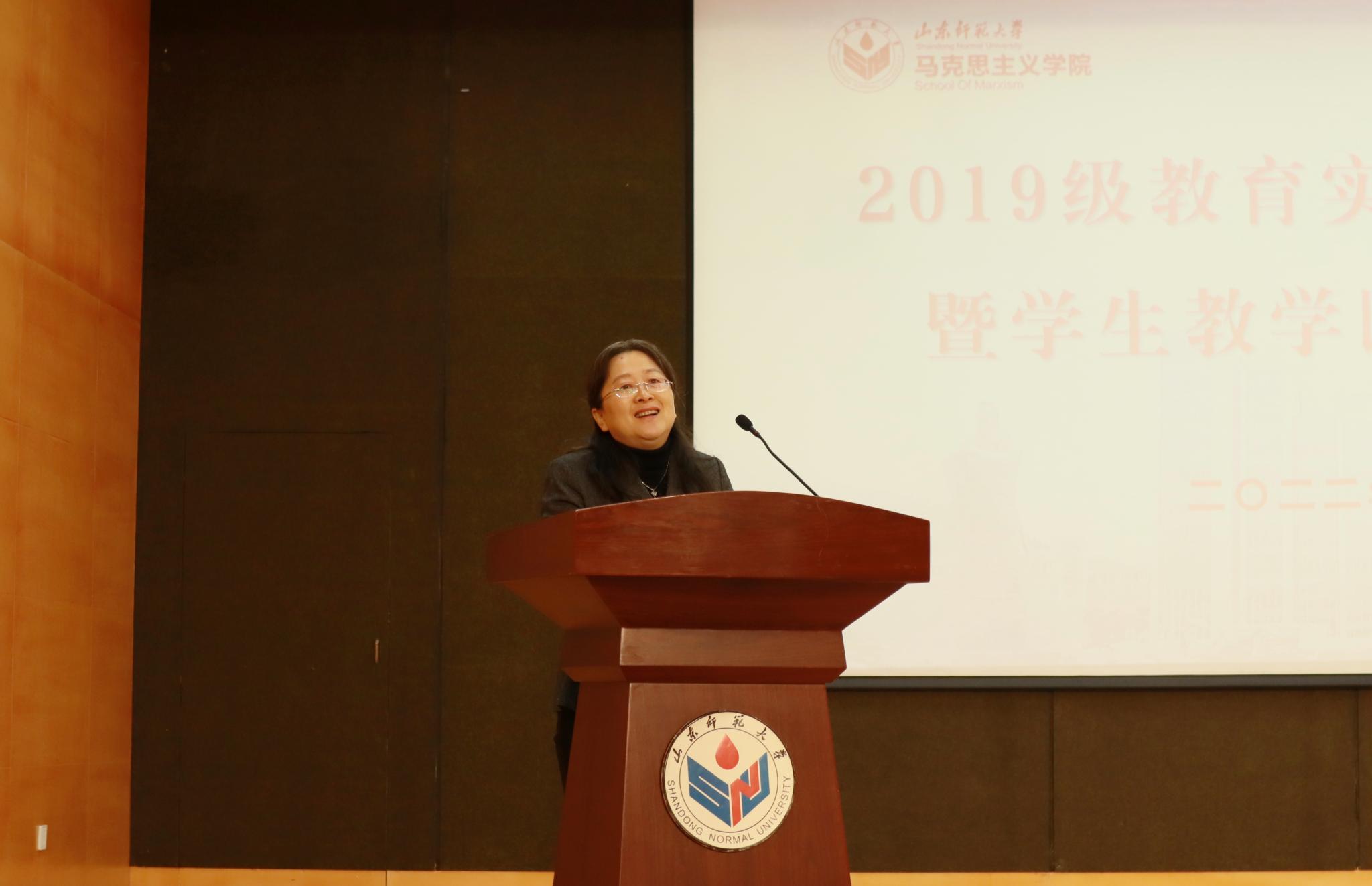 会上,孙余余对2019级教育实习和学院教学赛事举办情况进行总结,勉励学子们不忘初心,继续提升师范生从业技能水平。2019级实习生代表孙芊芊、刘婉茹、刘晓凤分别进行了教学技能风采展示和班主任工作展示。思政系主任王兰芳对风采展示依次进行了点评,肯定了同学们在实习过程中展现出的教师素养。