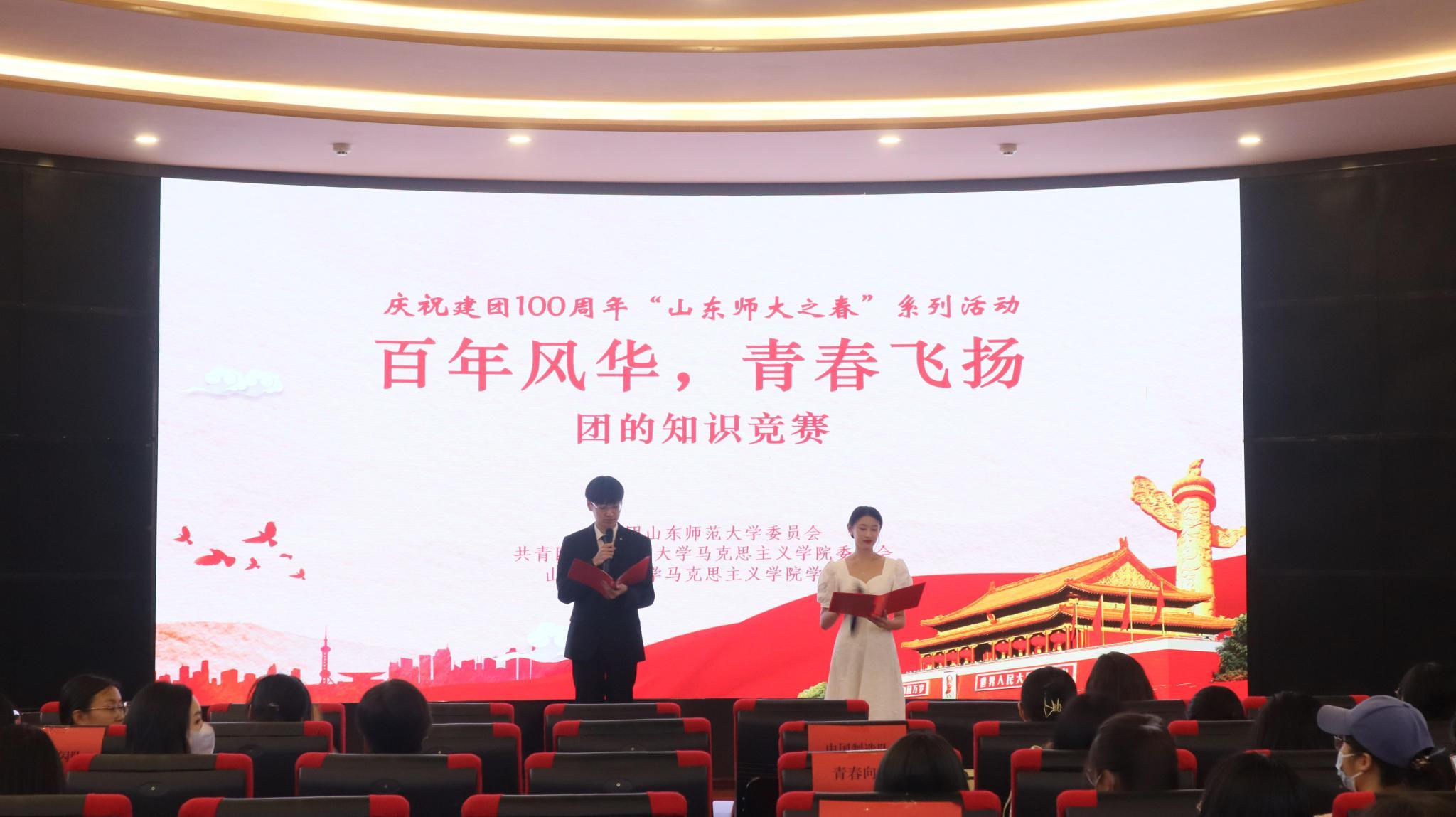 6月5日下午,马克思主义学院于长清湖校区虚拟仿真思政课体验教学中心成功举办“山东师大之春”系列活动之“百年风华,青春飞扬”团的知识竞赛决赛。本次竞赛由马克思主义学院学生会主办,活动面向全校学生,学院学工办主任、团委书记潘磊出席此次活动,经过初赛角逐成功晋级复赛的七支队伍参与其中,近二百名同学到场观赛。