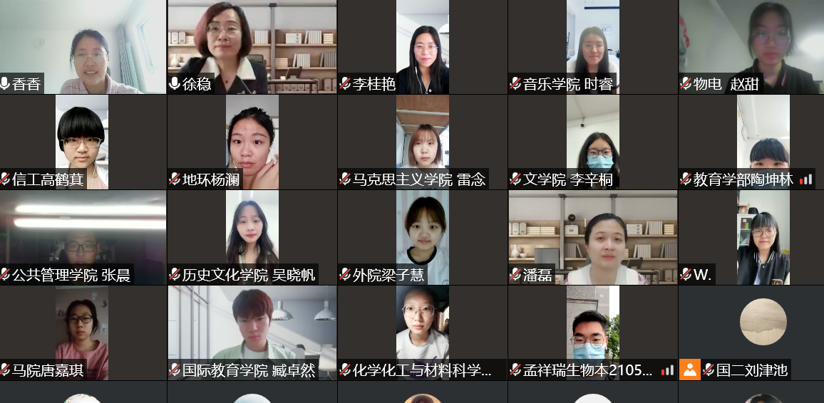 5月7日上午,马克思主义学院采取线上形式组织召开2021-2022学年第二学期期中座谈会,听取师生对本学期教学工作的意见和建议。学院副院长徐稳、院长助理孙余余、团委书记潘磊、各系部主任及各学院(部)学生代表30余人参会。