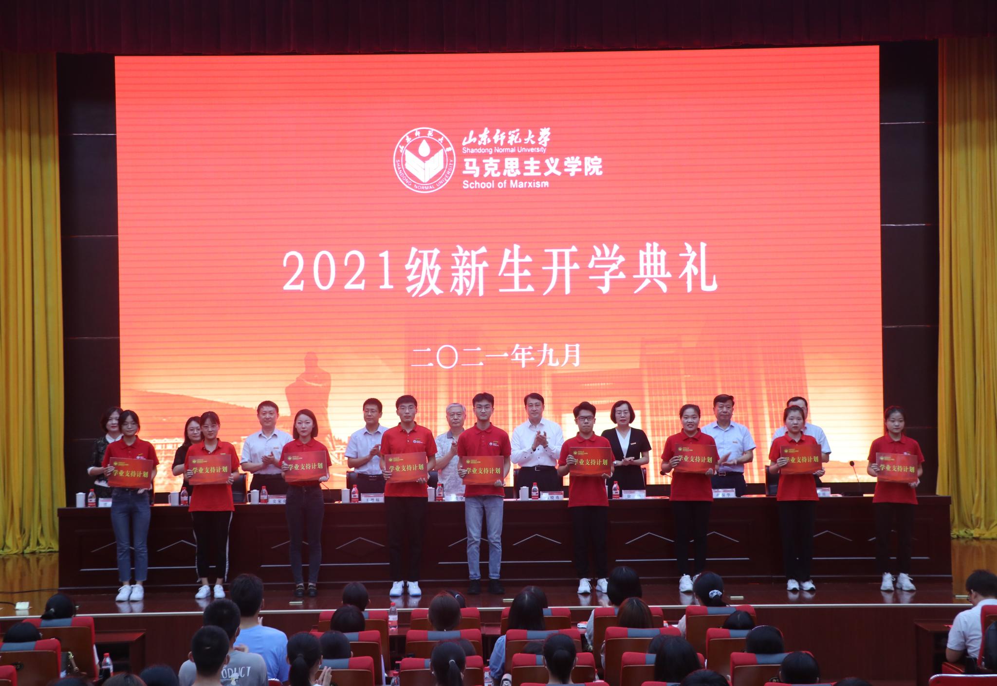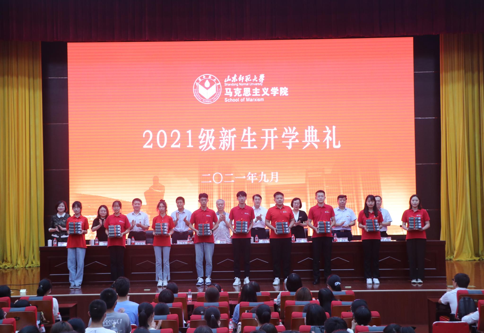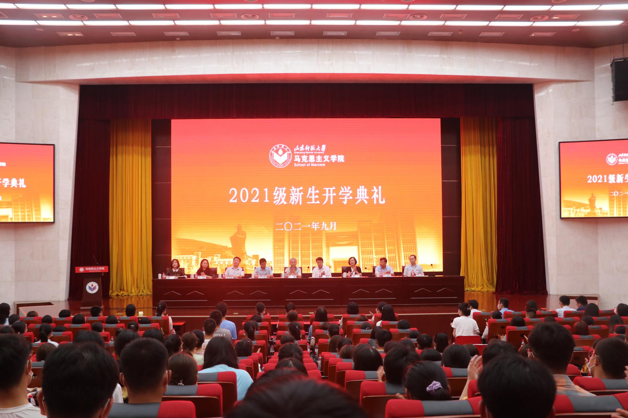 9月12日下午,马克思主义学院2021级新生开学典礼在树蕙堂第一报告厅举行。学院教师代表、博士生导师李爱华,学院党委书记吕晓勇,院长王增福,副院长徐稳、史家亮,工会主席胡保华,院长助理孙余余、吴春雷,学院各年级辅导员以及三百余名新生出席典礼。典礼由学工办主任、团委书记潘磊主持。