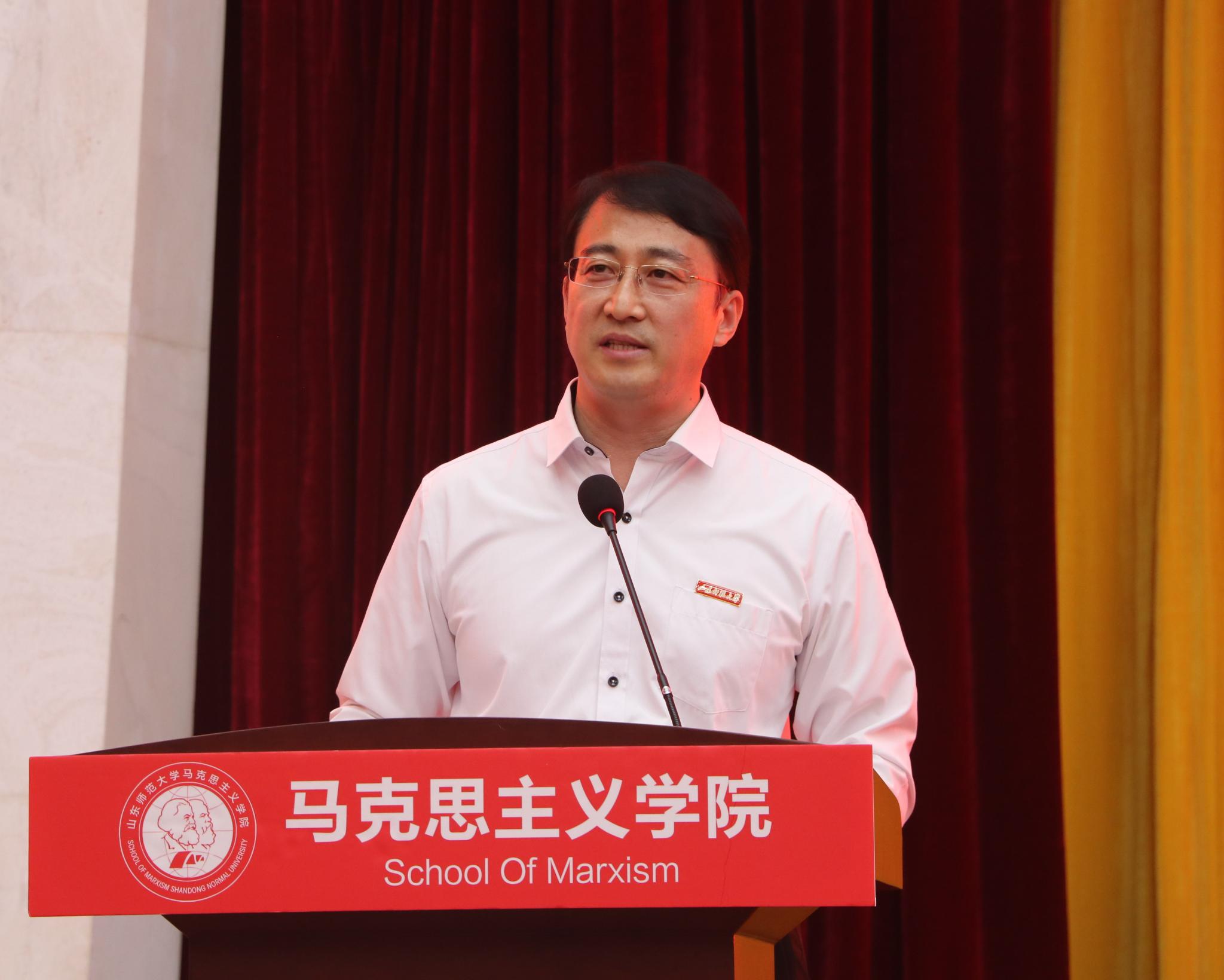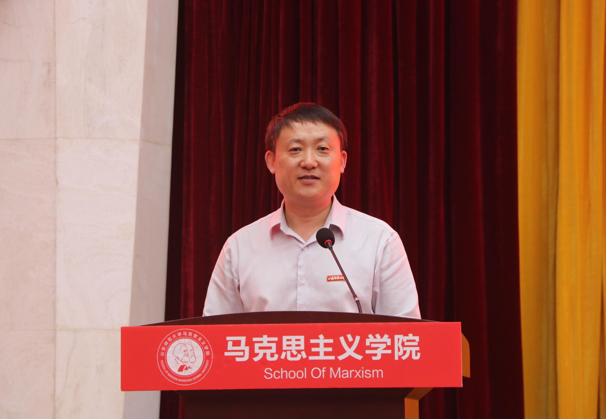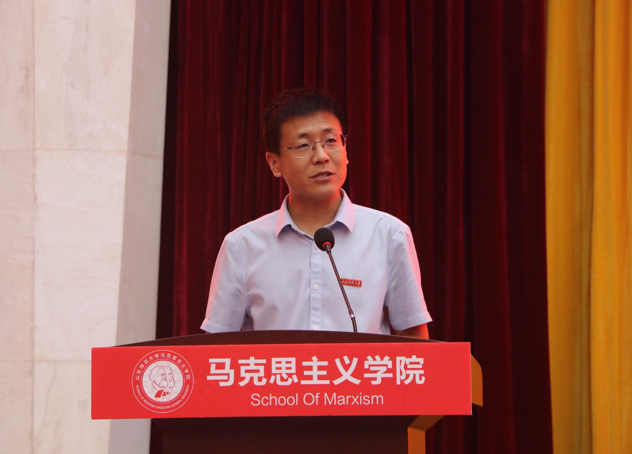 9月12日下午,马克思主义学院2021级新生开学典礼在树蕙堂第一报告厅举行。学院教师代表、博士生导师李爱华,学院党委书记吕晓勇,院长王增福,副院长徐稳、史家亮,工会主席胡保华,院长助理孙余余、吴春雷,学院各年级辅导员以及三百余名新生出席典礼。典礼由学工办主任、团委书记潘磊主持。