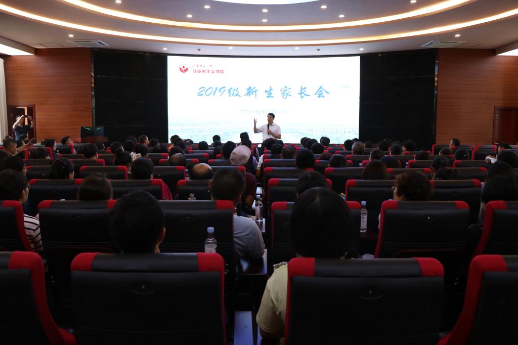 为让新生家长更进一步了解学生的学习生活与环境,9月1日中午,马克思主义学院于树蕙堂虚拟仿真思政课体验教学中心举办2019级新生家长会。学院党委书记吕晓勇、院长王增福、党委副书记孙建青、学工办主任、团委书记潘磊及百余名2019级新生家长参与其中,孙建青主持会议。
