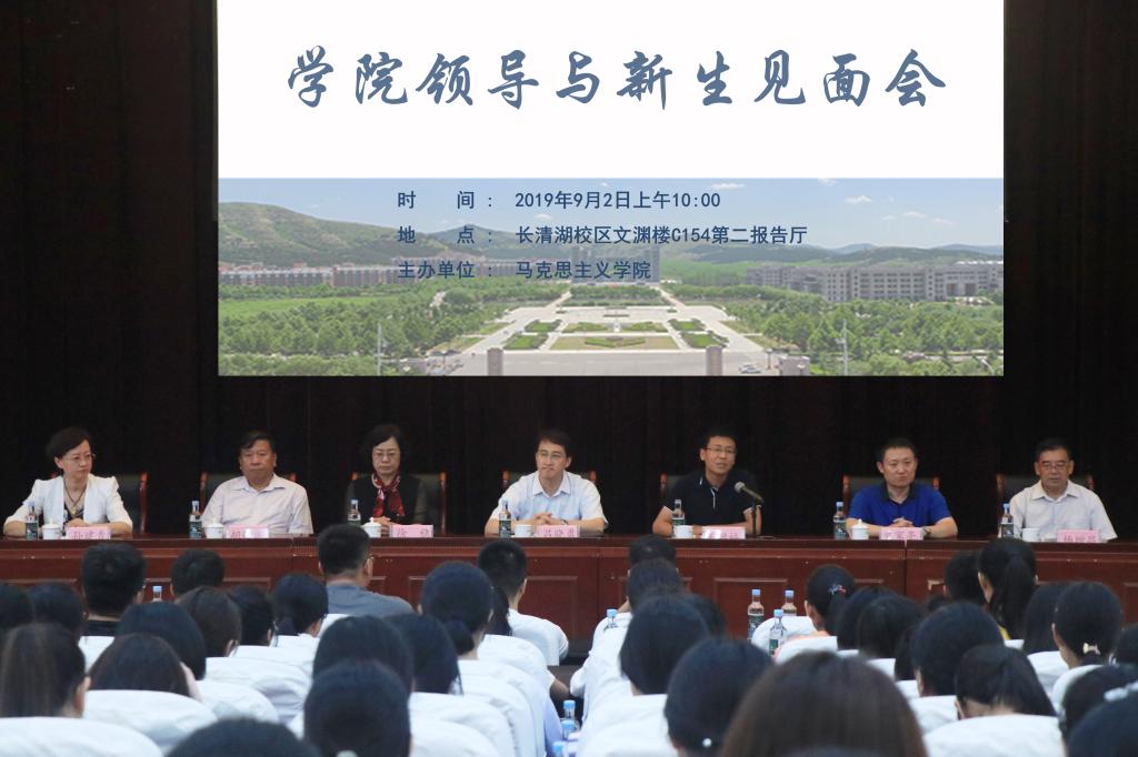 9月2日上午,马克思主义学院于长清湖校区第三报告厅举行学院领导与新生见面会,学院党委书记吕晓勇、院长王增福、学院党委副书记孙建青、副院长徐稳、副院长史家亮、工会主席胡保华、党政办主任杨增昌出席会议,2019级全体博士生、研究生、本科生共同参加。会议由孙建青主持。