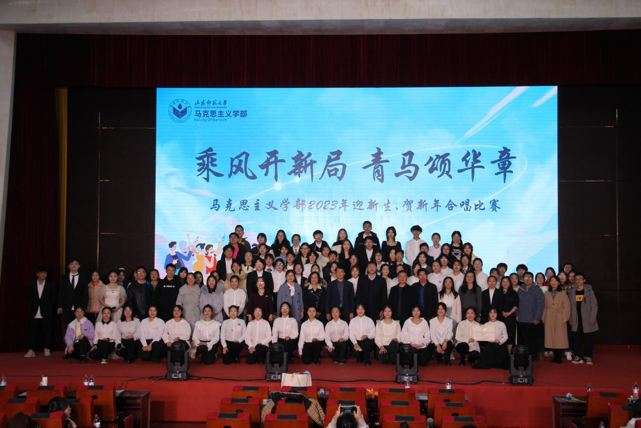 11月30日晚,马克思主义学部于长清湖校区树蕙堂第一报告厅举办“乘风开新局 青马颂华章”2023年迎新生、贺新年合唱比赛。学校学生工作部(武装部)部长吕晓勇,山东省高校德育研究中心副主任徐稳,学部党委书记顾大伟,党委副书记、纪委书记潘磊,副部长史家亮,工会主席刘现华,学工办主任、团委书记李志亮,教师代表及各年级辅导员出席活动并担任评委。马克思主义学部2023级、2022级全体本科生及2021级代表队、推免生代表队、研究生代表队参赛,现场座无虚席。