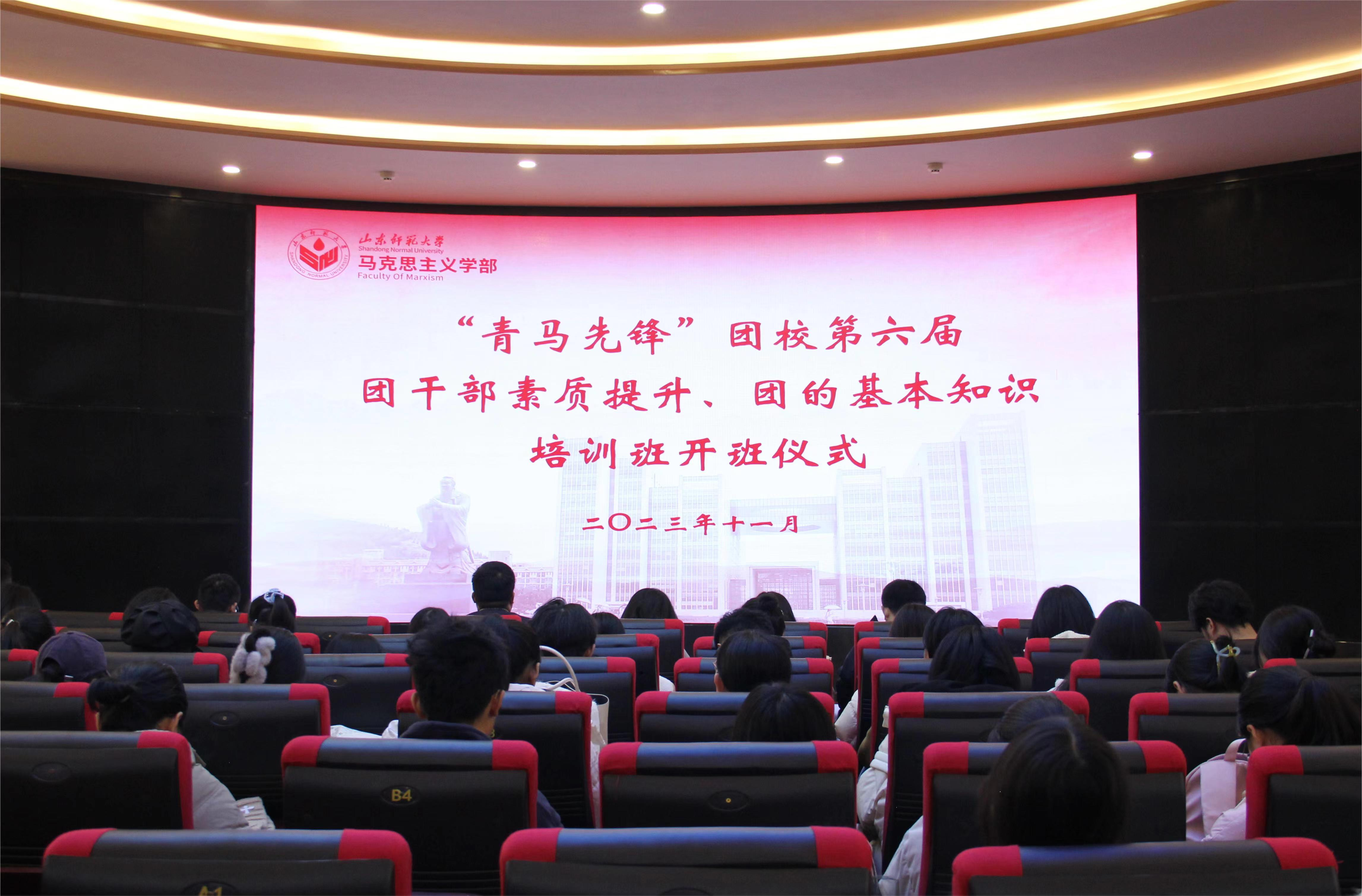 11月16日,马克思主义学部“青马先锋”团校组织于长清湖校区树蕙堂二层虚拟仿真思政课体验教学中心举办团校第六届培训班开班仪式。学部团委书记、学工办主任李志亮、2020级本科生辅导员张玲玉、2022级本科生辅导员刘霄、研究生辅导员庞帅康、2021级本科生辅导员倪清华和2023级本科生辅导员陶惠敏出席本次活动。“青马先锋”团校第六届团干部素质提升专题培训班和团的基本知识培训班全体学员参与本次仪式。活动由倪清华主持。