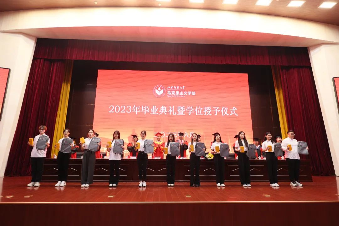 在庄严的国歌声中,典礼正式拉开帷幕。学院副院长吴春雷宣读《马克思主义学部2023届优秀毕业研究生名单》。学院挂职副院长、河西学院马克思主义学院副院长牛毅琴宣读《马克思主义学部2023届优秀本科毕业生名单》。学院党委委员、工会主席胡保华宣读《马克思主义学部第二届院长奖学金获奖名单》。与会领导老师为2023届优秀毕业研究生代表、优秀本科毕业生代表、院长奖学金获得者颁发荣誉证书和奖学金。