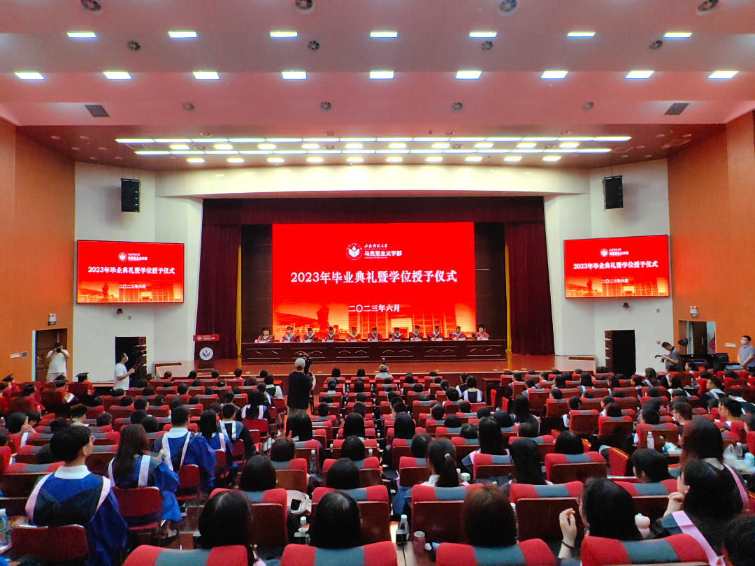 毕业研究生代表董愉彤、本科生代表刘婉茹先后上台发言,回顾了在校园里共同奋进的岁月,衷心感谢学部栽培之泽、师长教诲之恩,并表达了毕业生将始终在马言马、在马信马、传马护马的坚定信念,真挚的情感感染着现场的每一位师生。