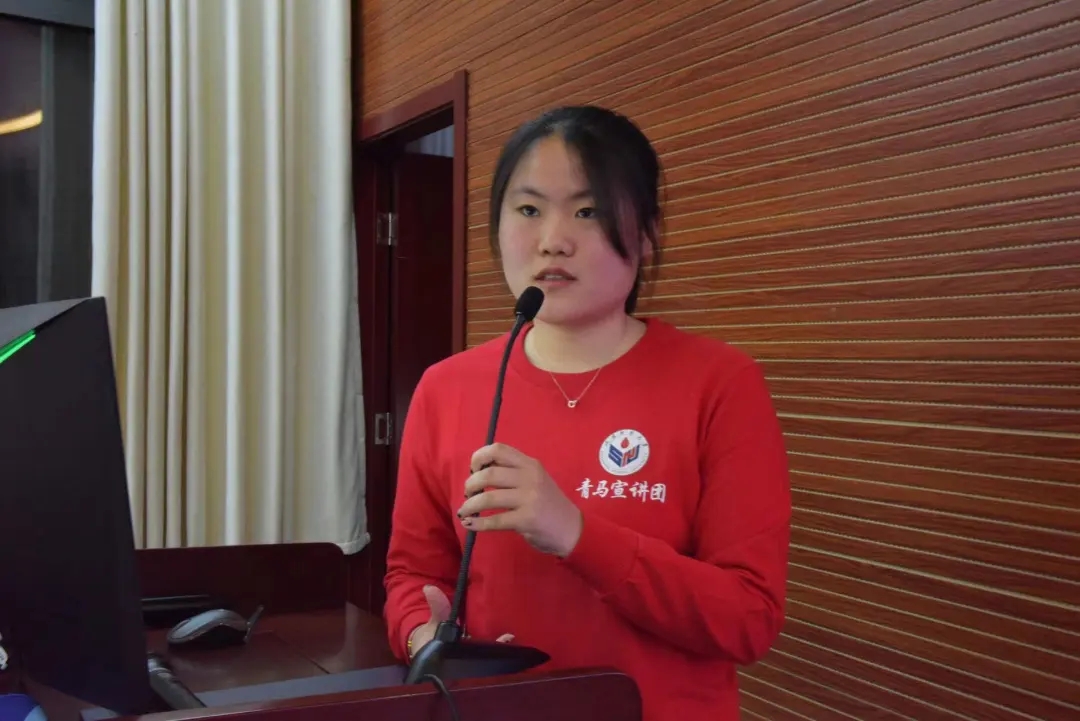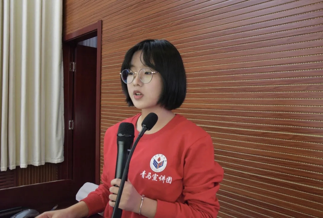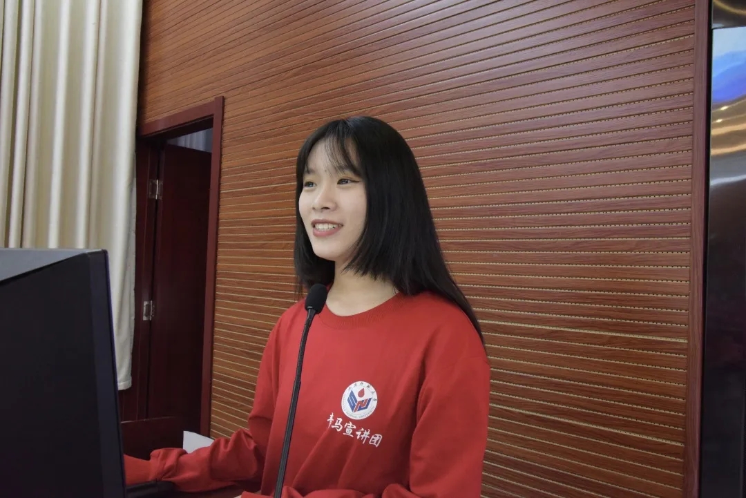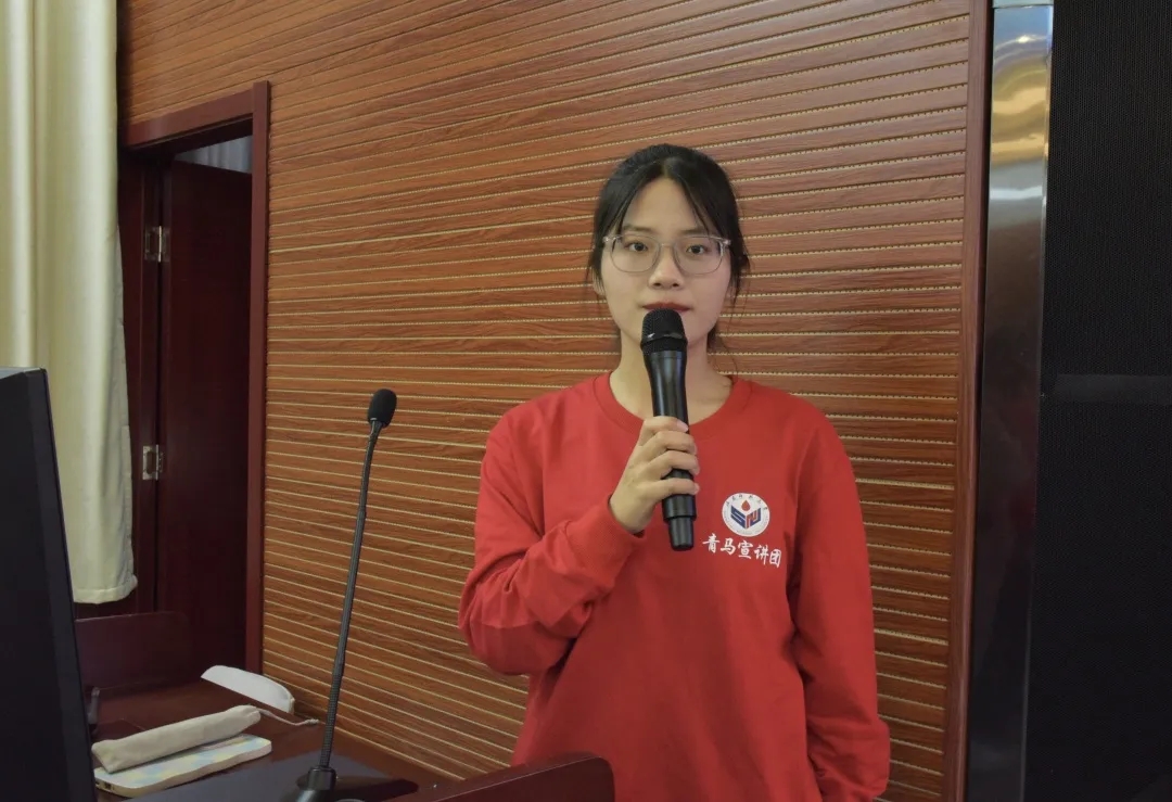 曹怡婷同学对本次宣讲会进行总结。她指出同学们要深入学习贯彻党的二十大精神,筑牢理想信念,把专业知识与中国式现代化有机结合,成长为有理想、敢担当、能吃苦、肯奋斗的新时代好青年。