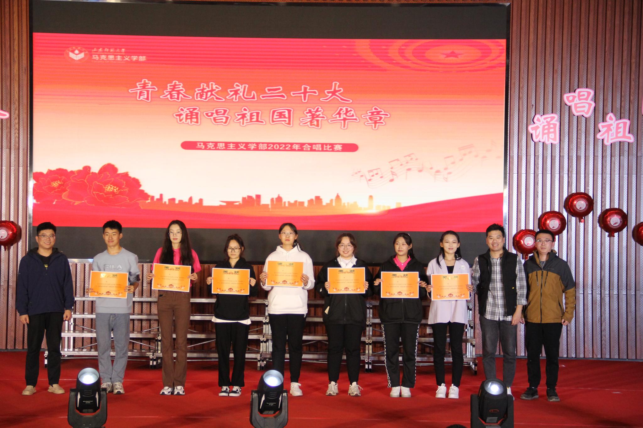 10月21日晚,马克思主义学部于文昌楼105报告厅举办“青春献礼二十大,诵唱祖国著华章”合唱比赛。党委副书记潘磊,思政系主任王兰芳,团委书记、学工办主任李志亮,青年教师王敏、朱文琦、王红珠,辅导员范培烁、王鑫磊、庞帅康出席活动并担任评委。马克思主义学部2021级、2022级全体本科生及2020级本科生、研究生代表参加。