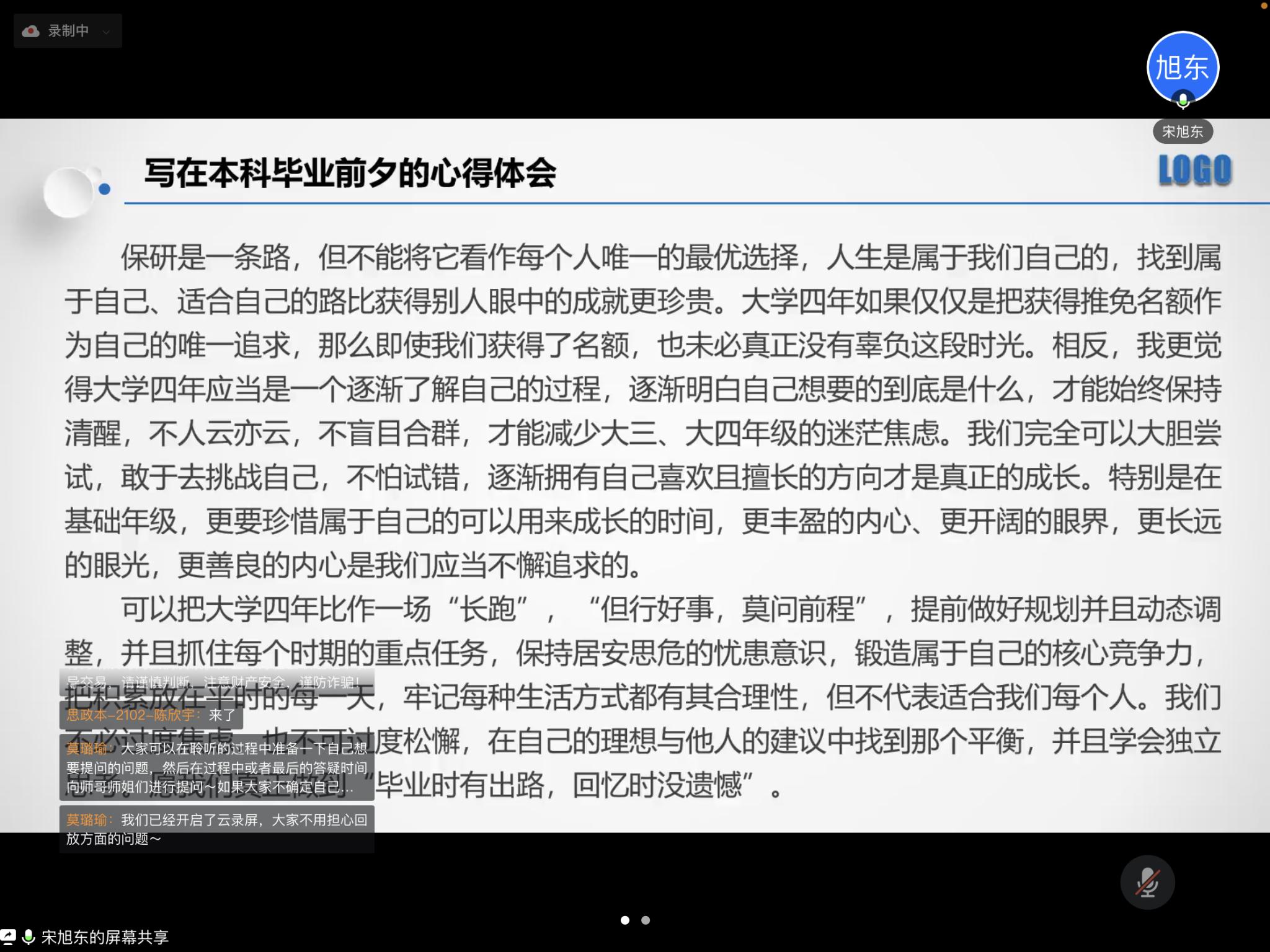 3月26日晚,马克思主义学院创新创业部举办青年创新创业沙龙之保研经验分享会,本次“保研经验分享会”采取线上的形式召开,邀请2018级本科生曹雨萌、宋旭东和王心怡分享经验,学院500余名本科生参与其中。