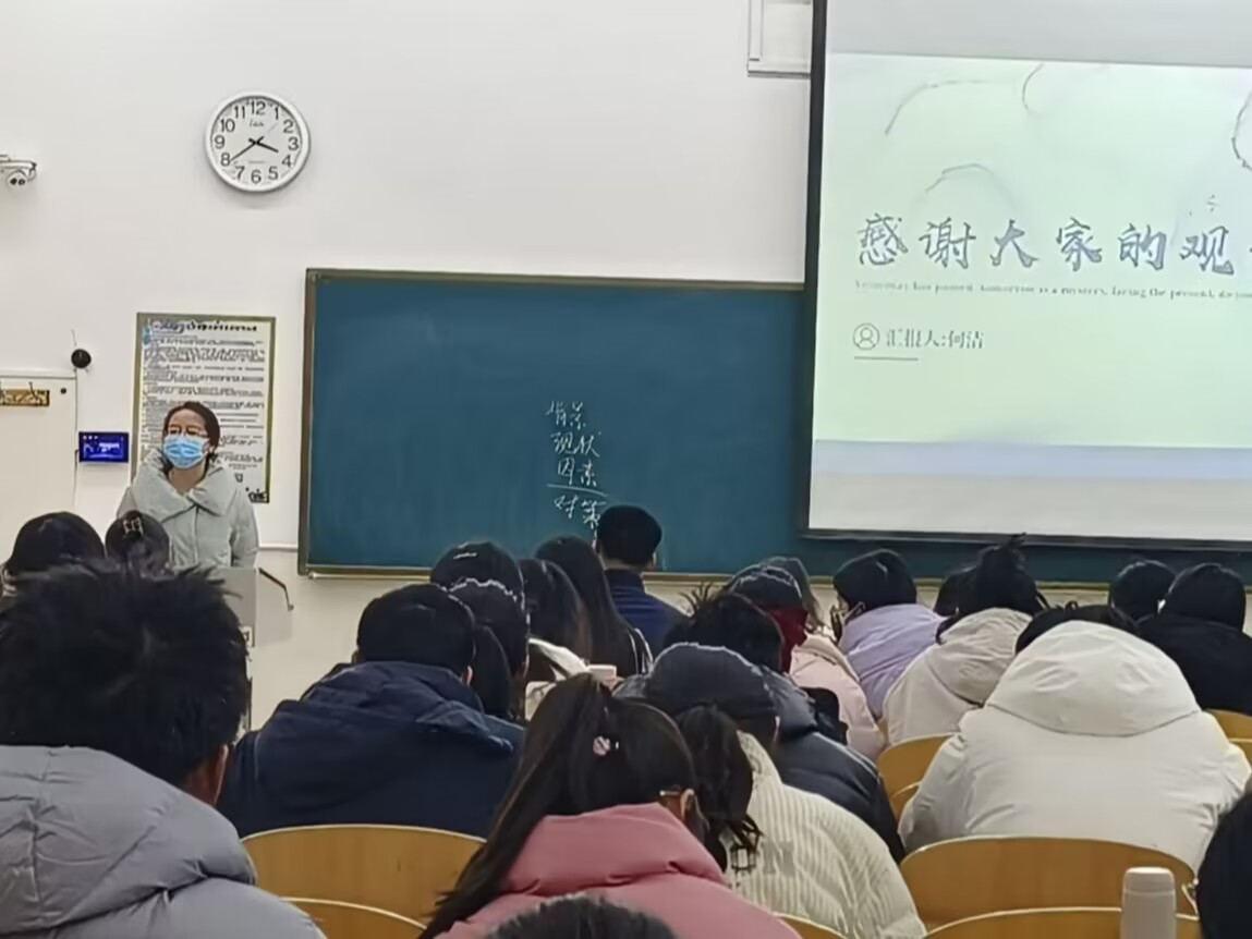 会议伊始,吴梓煜围绕选题和内容建构等方面,向参会学生分享了自己对大创项目的经验认识,他结合历届优秀作品实例,提出要注意选题的可行性,将观点与实践相统一。接着,何洁向同学们介绍了竞赛的基本情况与时间安排,并结合自己的参赛经历为同学们提供组队、选题、框架构建等方面的建议。随后,刘霄进行补充,希望学生间加强互动交流,积极参赛。最后,李志亮强调了大创对个人发展的重要意义,建议学生将其与“挑战杯”等竞赛相联系,以加深对选题的理解,鼓励大家积极准备大创项目并通过研究分析相关论文和往年优秀作品总结经验、确定选题。