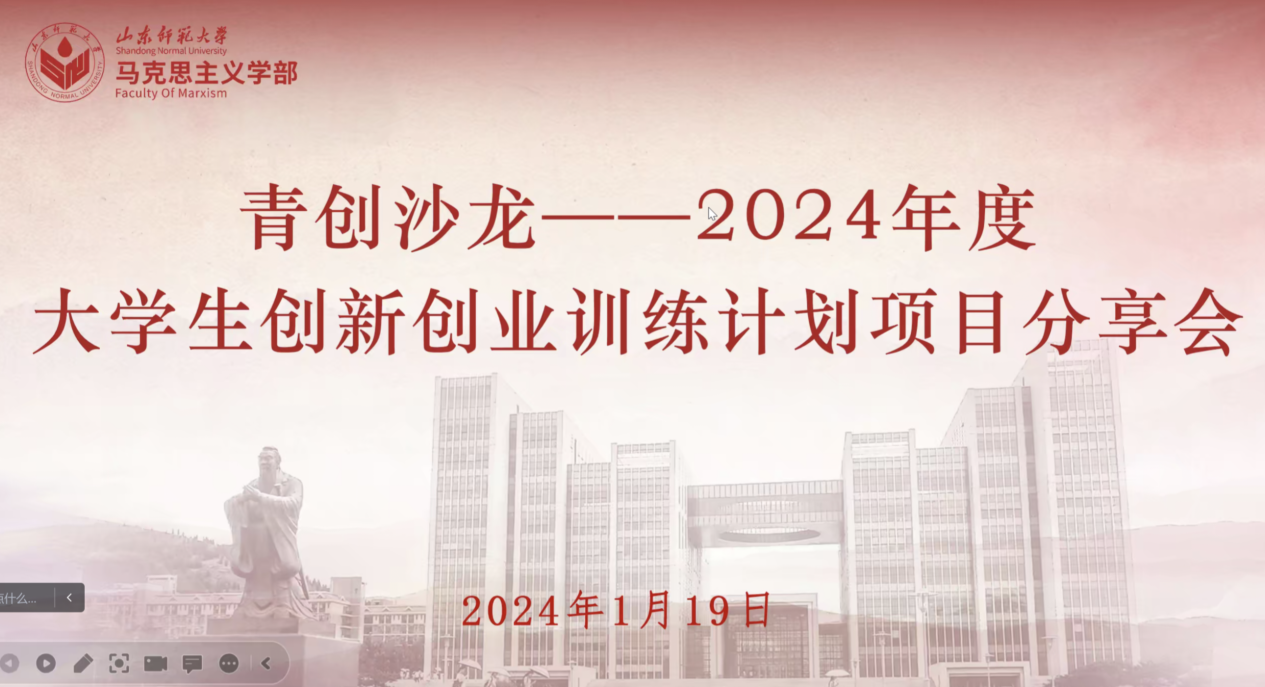 1月19日晚,马克思主义学部以线上方式顺利举办青创沙龙之2024年度大学生创新创业训练计划项目分享会,学部团委书记、学工办主任李志亮,2022级辅导员刘霄出席会议。学部一百余名学生积极参会,会议由学部学生会创新创业部刘子涵主持。