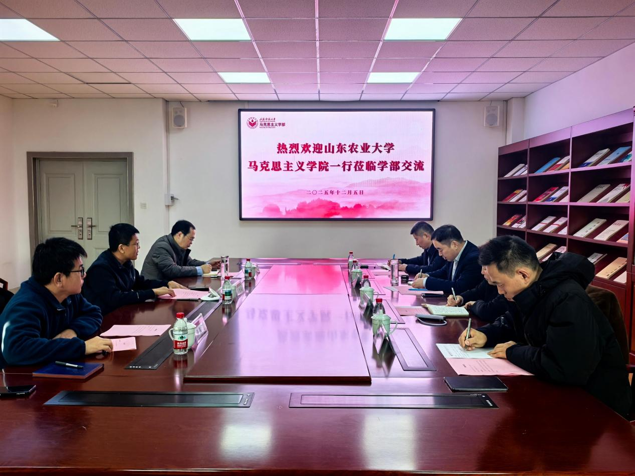 12月5日下午,山东农业大学马克思主义学院党委书记张方爱,党委副书记李平,副院长李国锋,党委委员、马克思主义理论专业主任、马克思主义基本原理教研部主任张庆伟来学部考察交流。学部部长王增福,副部长吴春雷,中共党史党建系主任许振江参加此次交流活动。双方在长清湖校区正德楼312会议室交流座谈。